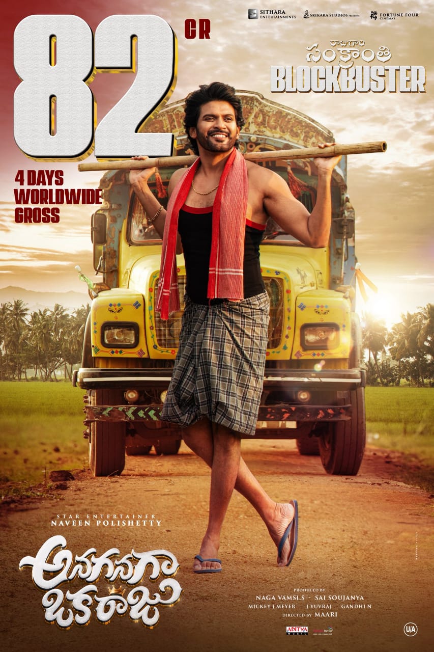 ప్రపంచవ్యాప్తంగా 4 రోజుల థియేట్రికల్ రన్ను పూర్తి చేసుకున్న ఈ సినిమా మొత్తంగా రూ.82 కోట్ల గ్రాస్ కలెక్షన్స్ సాధించినట్లు మేకర్స్ అధికారికంగా ప్రకటించారు. ఈ లెక్కన ఆదివారం నాడు మరింతగా వసూళ్లు పెరిగే అవకాశం ఉంది. ప్రతిరోజూ సగటున రూ.20 కోట్లకు పైగా కలెక్షన్స్ రాబడుతున్న ఈ సినిమా త్వరలోనే వంద కోట్ల మార్క్ చేరుకుంటుందని ట్రేడ్ విశ్లేషకులు అంచనా వేస్తున్నారు. ఇక ఇండియాలోనే కాకుండా ఓవర్సీస్ మార్కెట్లోనూ ఈ సినిమాకు సాలిడ్ రెస్పాన్స్ లభిస్తోంది. శనివారం నాటికి ఈ మూవీ 1 మిలియన్ డాలర్ల కలెక్షన్స్ వసూలు చేసింది. దీంతో నవీన్ పొలిశెట్టి నటించిన ‘జాతి రత్నాలు’, ‘మిస్ శెట్టి మిస్టర్ పోలిశెట్టి’తో పాటుగా ‘అనగనగా ఒక రాజు’ సినిమా కూడా 1 మిలియన్ డాలర్ మైలురాయిని చేరుకుంది.