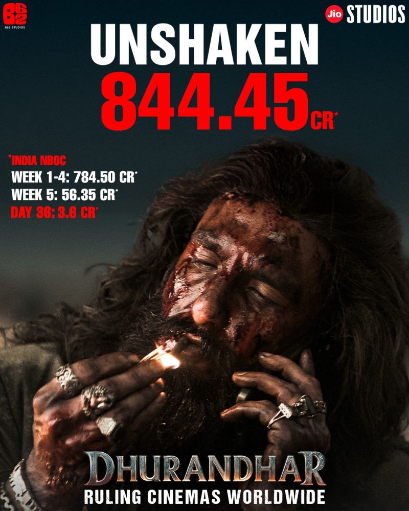 ప్రస్తుతానికి దురంధర్ ఇండియా లో 844.45 కోట్ల నెట్ వసూళ్లు సాధించింది. నాలుగవ వారం నుండి ఐదవ వారానికి వసూళ్లు సగానికి సగం తగ్గాయి. ఆరవ వారంలో కూడా తగ్గుదల కనిపిస్తోంది. వారాంతానికి వసూళ్లు పెరగవచ్చు. దురంధర్ ఫుల్ రన్ లో 860 కోట్లు వసూలు చేసే అవకాశం ఉంది. గల్ఫ్, అరబ్ దేశాలలో విడుదల చేస్తే వసూళ్లు భారీగా పెరిగే అవకాశం ఉంది.