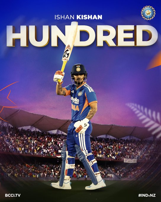 ఇన్నింగ్స్ 17 వ ఓవర్ లో ఇషాన్ కిషన్ సాంట్నర్ బౌలింగ్ లో మూడు సిక్సర్లు, ఒక ఫోర్  బాదాడు. ఈ క్రమంలో సెంచరీ పూర్తి చేసుకున్న ఇషాన్ కిషన్ 43 బంతుల్లో 103 పరుగులు చేసి అవుట్ అయ్యాడు. ఇషాన్ ఇన్నింగ్స్ లో 10 సిక్సర్, 6 ఫోర్లు ఉన్నాయి. ఆ తరవాత వచ్చిన హార్దిక్ పాండ్య కూడా 17 బంతుల్లో 42 పరుగులు చేశాడు. హార్దిక్ ఇన్నింగ్స్ లో నాలుగు సిక్సర్లు, ఒక ఫోర్ ఉన్నాయి