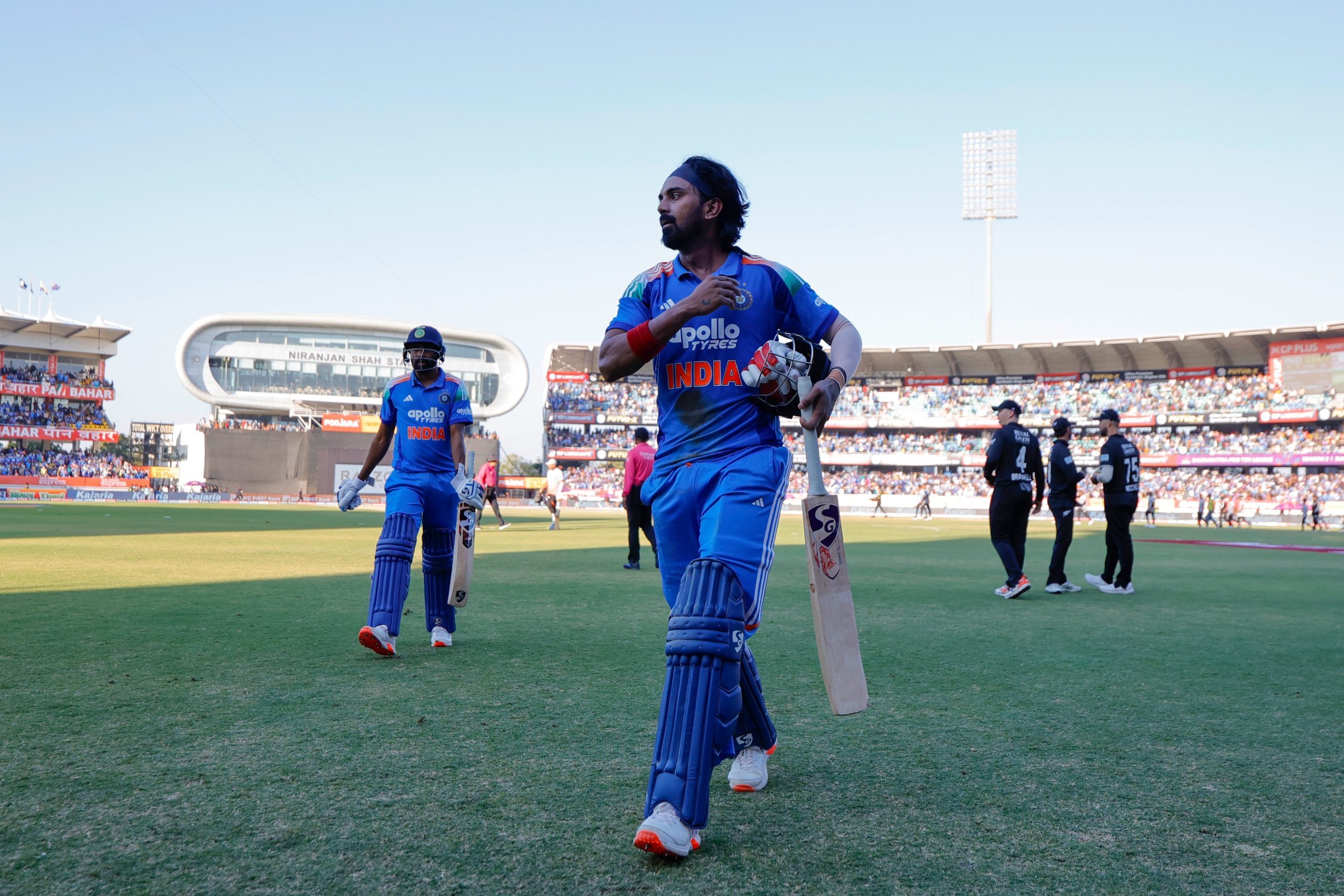 24 పరుగులు చేసిన రోహిత్ శర్మ అవుట్ అయిన తరవాత వచ్చిన విరాట్ కోహ్లీ 23 పరుగులు, శ్రేయాస్ అయ్యర్ 8 పరుగులు చేసి అవుట్ అయ్యారు. కెప్టెన్ శుభ్ మన్ గిల్ 53 బంతుల్లో 56 పరుగులు చేసి అవుట్ అయ్యాడు