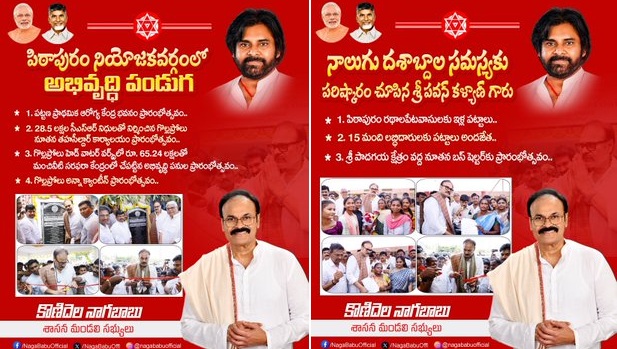 ఈ రోజు పిఠాపురం పర్యటించిన నాగబాబు అనేక అభివృద్ధి కార్యక్రమాలను ప్రారంభించారు