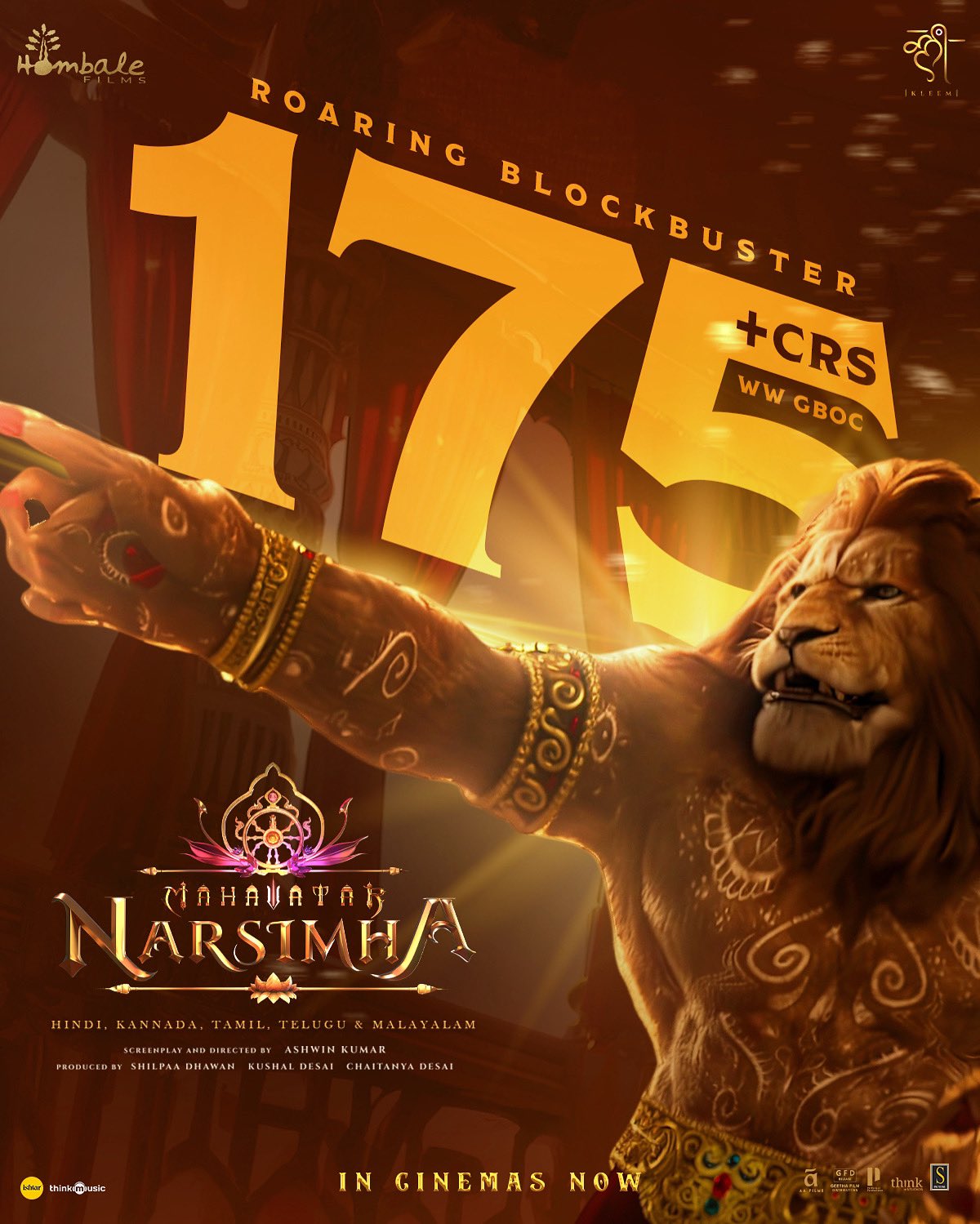 ముఖ్యంగా ఈ చిత్రం హిందీ లో 100 కోట్లకు పైగా వసూళ్లు రాబట్టింది. కొంత మంది చెప్పులు బయట విడిచి థియేటర్ల లోకి వెళుతున్నారని తెలుస్తోంది. తెలుగు లో ఈ సినిమాని అల్లు అరవింద్ (Allu Aravind) విడుదల చేశారు. తెలుగులో కూడా ఈ మహావతార్ నరసింహ సినిమా సుమారు 18 కోట్లు దాకా వసూలు చేసినట్లు సమాచారం. ఈ చిత్రం 175 కోట్ల గ్రాస్ కలెక్షన్స్ సాధించినట్లు మేకర్స్ పోస్టర్ విడుదల చేశారు