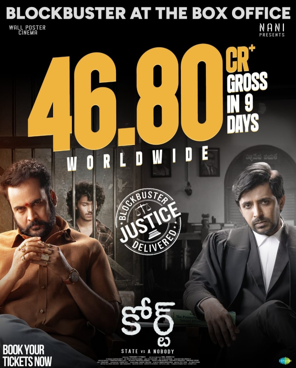 ఈ సినిమా విడుదలైన 9 రోజుల్లోనే ప్రపంచవ్యాప్తంగా రూ. 46.80 కోట్ల గ్రాస్ వసూళ్లు రాబట్టడం విశేషం. ముఖ్యంగా 9వ రోజు ఈ సినిమా రూ. 4.50 కోట్ల గ్రాస్ కలెక్షన్లు సాధించింది. ఈ విషయాన్ని చిత్ర బృందం అధికారికంగా ప్రకటించారు. ఈ క్రమంలోనే ప్రత్యేకంగా పోస్టర్ రిలీజ్ చేశారు. శనివారం వీకెండ్ మొదలవడంతో ‘కోర్ట్’ కి భారీగా కలెక్షన్స్ పెరిగాయి. ఇక ఆదివారం ఈ సినిమా కలెక్షన్స్ మరింతగా పెరిగి రూ.50 కోట్ల క్లబ్ లో చేరే అవకాశముంది. మరి సోమవారం వర్కింగ్ డే కావడంతో కలెక్షన్స్ ఎలా ఉంటాయో అన్నది చూడాలి. అయితే కేవలం రూ.11 కోట్ల బడ్జెట్ తో తెరకెక్కిన ఈ సినిమా ఇక్కడే కాకుండా ఓవర్సీస్లోనూ దుమ్మురేపుతోంది. రెండు తెలుగు రాష్ట్రాల్లోనే కాకుండా యూఎస్ మార్కెట్ లో కూడా సూపర్ స్ట్రాంగ్ రన్ ని కొనసాగిస్తుండడం విశేషం. తాజాగా ఈ మూవీ యూఎస్ లో 9.5 లక్షల డాలర్స్ మార్క్ ని దాటేసింది. ఇదే జోరు కొనసాగితే ఆదివారం ముగిసేసరికి 1 మిలియన్ డాలర్స్ క్లబ్ లో చేరే అవకాశముంది. కాగా, కోర్ట్ (Court) మూవీకి ఇప్పటికే ఓటీటీ రైట్స్ ద్వారా రూ. 8 కోట్లు, ఆడియో ద్వారా రూ. 50 లక్షలు, శాటిలైట్ ద్వారా రూ. 2 కోట్లు వచ్చాయని తెలుస్తోంది.