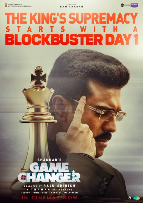పొలిటికల్ థ్రిల్లర్ గా తెరకెక్కిన గేమ్ చేంజర్ మొదటి రోజు 186 కోట్ల గ్రాస్ కలెక్షన్స్ ని సాధించింది. ఈ విషయాన్నీ, మేకర్స్  ట్విట్టర్ లో పోస్ట్ చేశారు