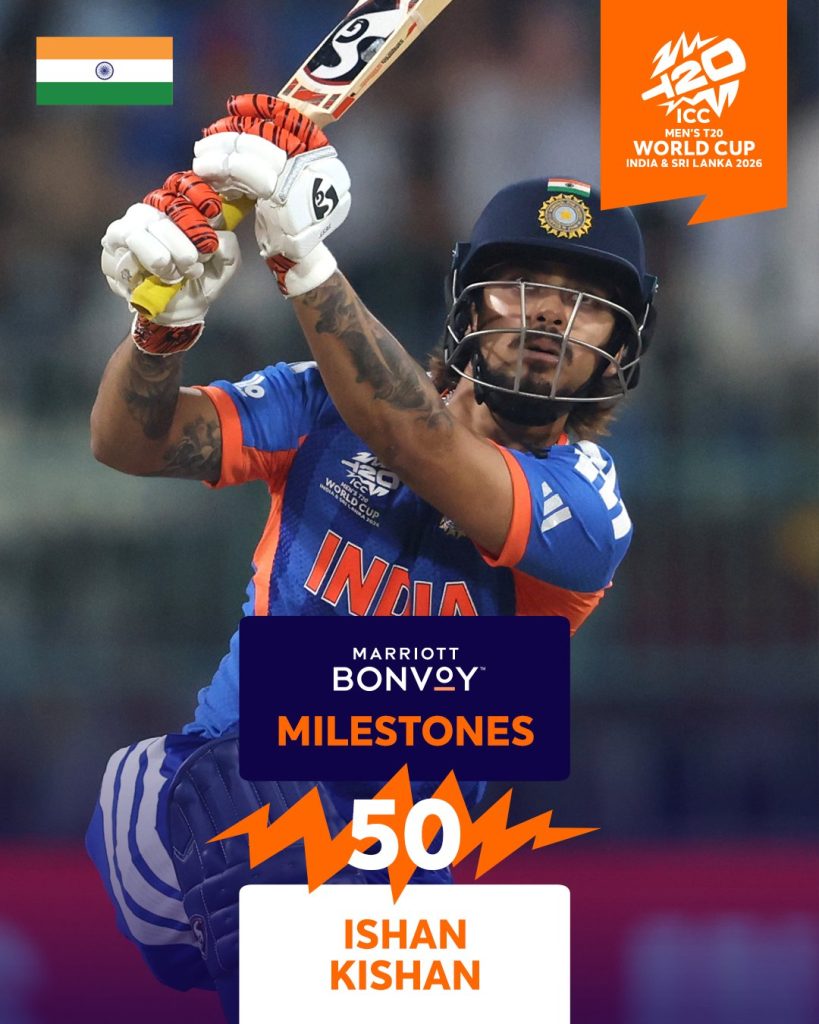 భారత జట్టు మొదటి ఓవర్లోనే అభిషేక్ శర్మ వికెట్ కోల్పోయింది.  అభిషేక్ శర్మ డక్ అవుట్ అయ్యాడు.  ఈ వరల్డ్ కప్ లో డక్ అవుట్ అవడం ఇది రెండోసారి.  వన్ డౌన్ లో వచ్చిన తిలక్ వర్మ తో జత కలిసిన మరో ఓపెనర్ ఇషాన్ కిషన్ ఆకాశమే హద్దుగా చెలరేగి పోయాడు. వీరిద్దరూ కలిసి రెండవ వికెట్ కు 87 పరుగులు జోడించారు.